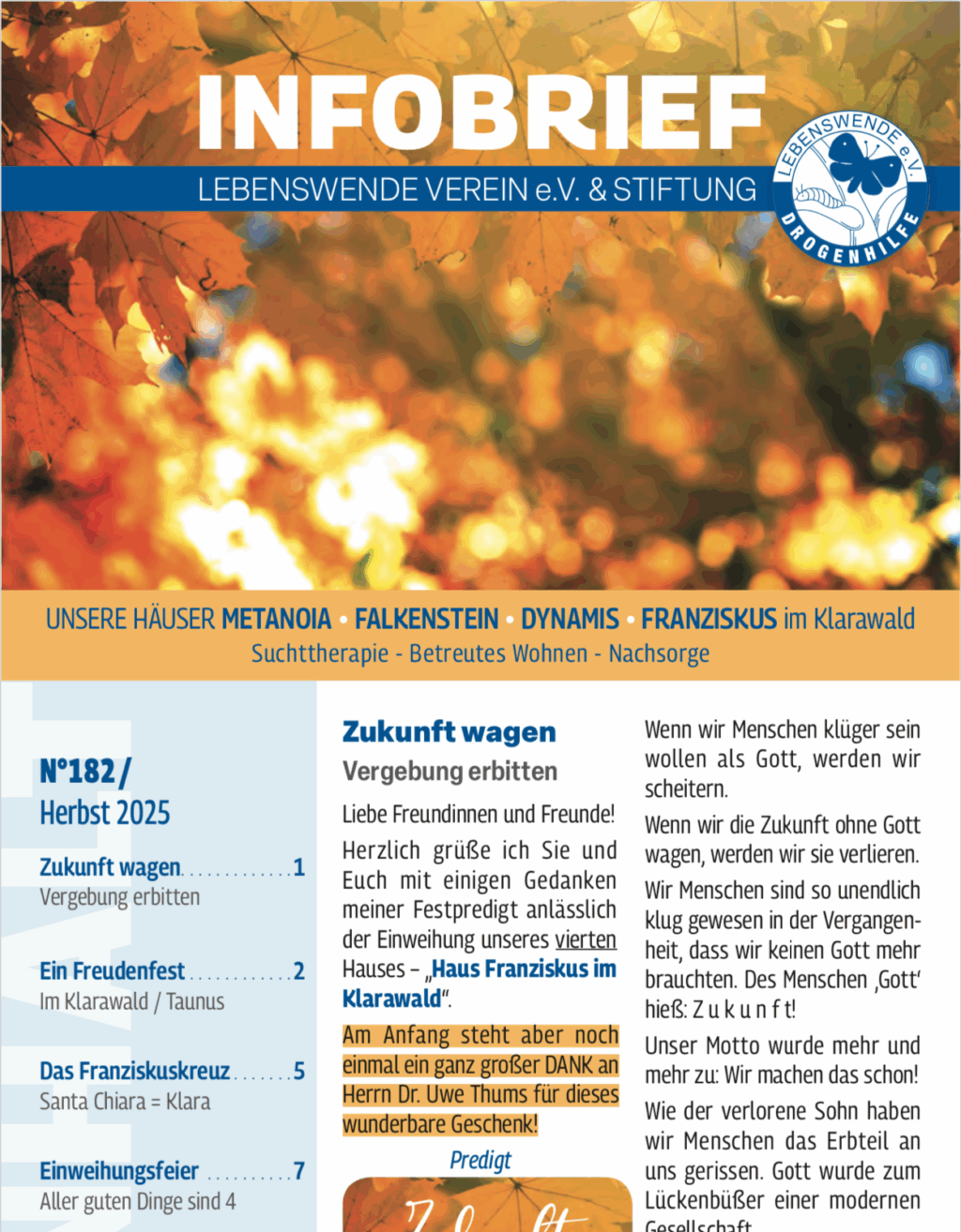 „Ich habe nach über 40 Jahren die Arbeit der Suchttherapie in Frankfurt übernommen. Die Lebenswende hat viele Wunder bewirkt und Menschen aus Sucht und